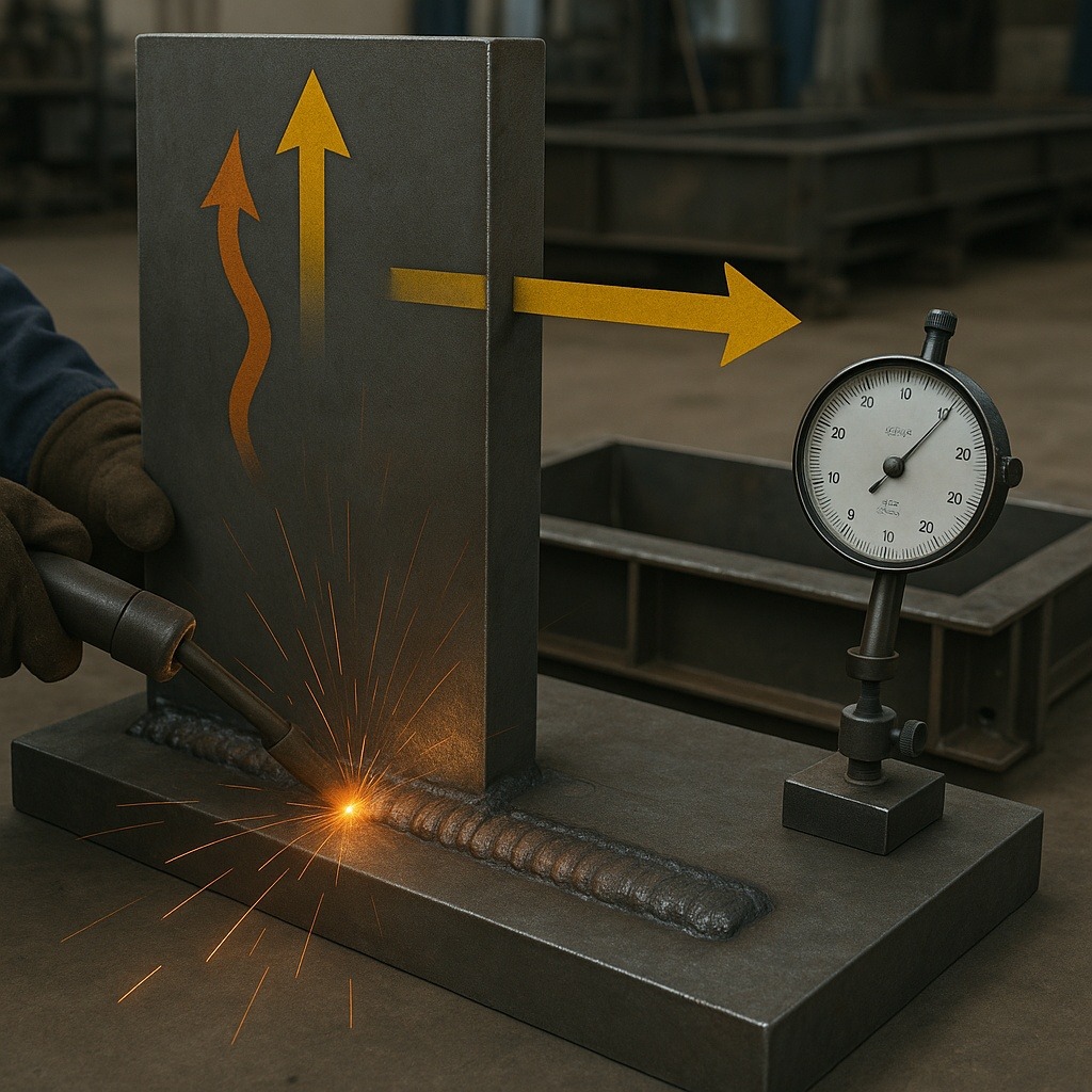 Нагретый участок расширяется, а при остывании стремится укоротиться. Если рядом присутствует жёсткая зона или ребро, сокращение блокируется — появляется остаточная деформация. Чем больше тепловложение и чем выше градиент температур, тем заметнее коробление. На плоских полках и кромках особенно опасны длинные непрерывные швы, сделанные одним проходом: они притягивают металл к себе, вызывая «ступеньку» или «пропеллер».