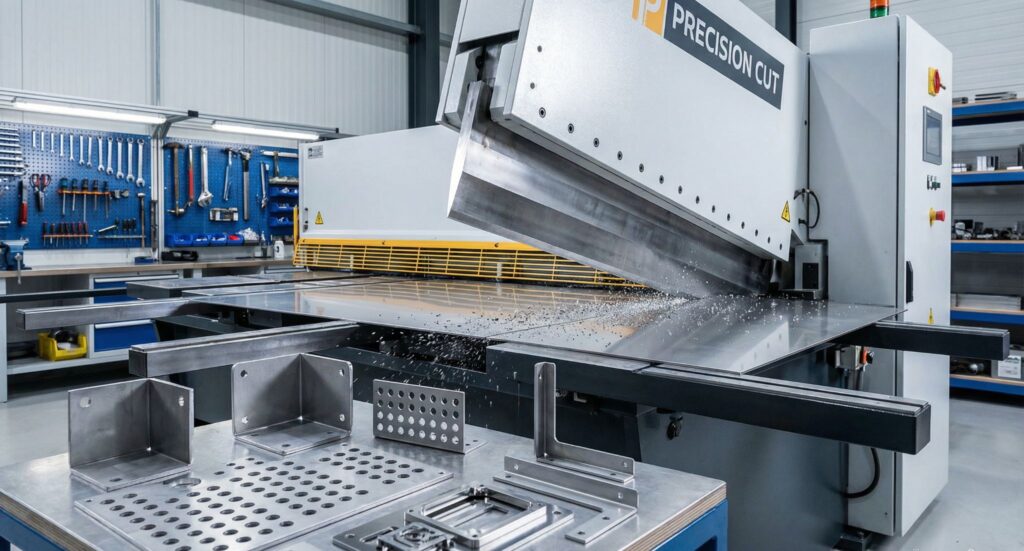 Режем полосы, карточки и заготовки под последующую гибку, сверление и фрезерование.